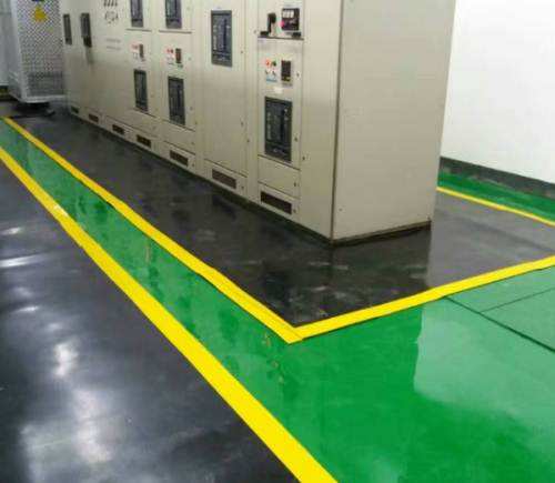 2、綠色配電間地面可以采用黑色絕緣膠墊,絕緣膠墊的邊緣可以使用絕緣膠帶固定,三種顏色惺惺相映,看起來既美觀又漂亮又干凈,如下圖所示