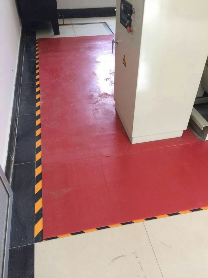 3、黑色絕緣膠墊普通地板磚地面,可以通過黃黑絕緣膠帶(絕緣漆)或反光膠帶進行固定,看起來層次分明,整體風(fēng)格有很大的提升,如下圖: